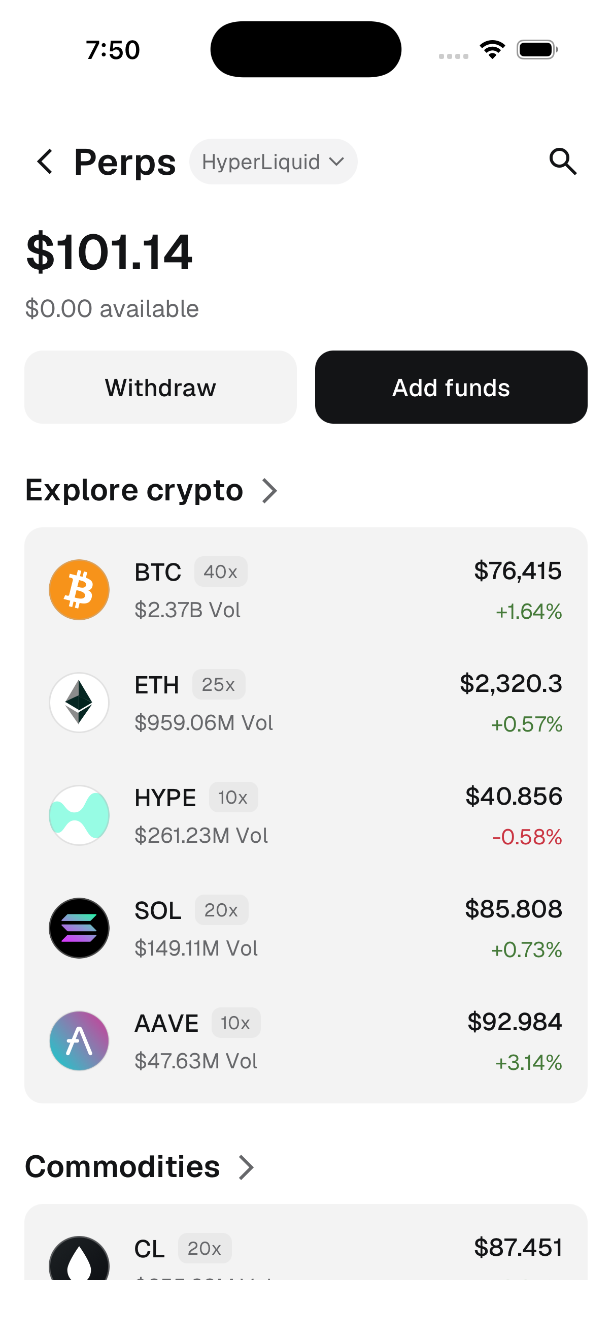 …29145) - fix(perps): complete spot-balance parity cp-7.72.2 (#29110) <!-- Please submit this PR as a draft initially. Do not mark it as "Ready for review" until the template has been completely filled out, and PR status checks have passed at least once. --> ## **Description** Full fix for **TAT-3016 — [PROD INCIDENT] MetaMask UI shows $0 balance for accounts with spot + perps funds on HyperLiquid**. Builds on Matt's stream fix ([#29089](#29089)) and adds the two missing pieces uncovered during investigation. ### What was broken For HyperLiquid accounts that hold collateral as spot USDC (non-zero `spotClearinghouseState.balances.USDC`) but zero perps clearinghouse balance (`clearinghouseState.withdrawable == 0`, `marginSummary.accountValue == 0`), three independent code paths were under-reporting the balance: | Path | Pre-fix `totalBalance` | Pre-fix `availableBalance` | Why | |---|---|---|---| | Streamed (`HyperLiquidSubscriptionService` webData2 + clearinghouseState callbacks) | `0` | `0` | `adaptAccountStateFromSDK(data.clearinghouseState, undefined)` never fetched/attached `spotClearinghouseState` | | Standalone fetch (`PerpsController.getAccountState({standalone: true})`) | `0` | `0` | Same omission pattern in a separate provider path (`HyperLiquidProvider.ts:5545-5573`) | | Full fetch (`PerpsController.getAccountState()`) | **correct** (`101.13…`) | `0` | Only path that correctly queried both clearinghouse + spot | ### Why it surfaced now Two independent changes in the week leading up to the incident made a long-standing omission visible at scale: 1. **`feat(perps): disk-backed cold-start cache for instant data display` ([#27898](#27898), merged 2026-04-11)** changed `usePerpsLiveAccount` to seed first render from the in-memory stream snapshot (`streamManager.account.getSnapshot()`) before falling back to the preloaded disk cache. The stream snapshot has always been spot-less because `HyperLiquidSubscriptionService.ts:1406` and `:1604` have passed `spotState=undefined` to `adaptAccountStateFromSDK` since December 2025 / February 2026 (git blame). Flipping the trust order from disk cache → live stream exposed the pre-existing zero on first paint. 2. **HyperLiquid Portfolio Margin alpha shipped on the 2026-04-18 network upgrade.** PM pushes more users to hold collateral as spot USDC rather than transferring into perps clearinghouse, expanding the population hitting the spot-only account shape. Neither change is the root cause. The fix is on the MetaMask side: the streamed and standalone account paths must read `spotClearinghouseState` alongside `clearinghouseState` and include spot balance in `totalBalance` for parity with the full-fetch path. ### What this PR does - **Spot-inclusive balance across all three account-state paths.** Streamed, standalone, and full-fetch paths now fold `spotClearinghouseState.balances` into `AccountState.totalBalance` via the shared `addSpotBalanceToAccountState` helper. Only collateral-eligible coins contribute (`SPOT_COLLATERAL_COINS = {USDC, USDH}`) — non-collateral spot assets (HYPE, PURR, …) are excluded so they don't mis-gate the CTA for users who can't actually trade them. - **USDH handled for HIP-3 USDH DEXs.** The codebase already models USDH as auto-collateral (`HyperLiquidProvider.#isUsdhCollateralDex` / `#getSpotUsdhBalance`); including USDH in the allowlist keeps USDH-only HIP-3 users from hitting the same $0 regression. - **`Add Funds` CTA gates on `totalBalance`.** `PerpsMarketDetailsView.showAddFundsCTA` now checks `totalBalance < threshold && defaultPayToken === null`. "User has any money in the perps ecosystem → hide Add Funds." Also fixes the pre-existing edge case where funds locked in an open position incorrectly prompted Add Funds. - **Order-form preselect keeps `availableBalance`.** `useDefaultPayWithTokenWhenNoPerpsBalance` gates on withdrawable so spot-funded / margin-locked accounts still get an external pay token preselected in `PerpsOrderView`. CTA correctness is preserved by the component-level `totalBalance` guard. - **Race-free spot state cache.** `#spotStateGeneration` token + `#spotStatePromiseUserAddress` tracker in `HyperLiquidSubscriptionService`. `#ensureSpotState` only shares in-flight promises when the user matches; `#refreshSpotState` discards result + error if generation was bumped post-await; `cleanUp` / `clearAll` bump generation and null promise refs. Prevents user-A's spot fetch from re-populating the cache after a switch to user B. - **Cold-start SDK init.** `#refreshSpotState` now awaits `ensureSubscriptionClient` before `getInfoClient()` (which throws on fresh instances) so the first `subscribeToAccount` on a cold service gets the spot-adjusted snapshot instead of perps-only until resubscribe. - **`NaN` guard** in `addSpotBalanceToAccountState` keeps `FallbackDataDisplay` sentinels intact when upstream `totalBalance` is non-numeric. ### What this PR deliberately does NOT change - **Order-form slider and order-placement warnings** (`usePerpsOrderForm.ts`, `PerpsOrderView.tsx`) keep reading `availableBalance`. Those surfaces need *immediately-spendable withdrawable*. On standard-margin (non-Unified/non-PM) HyperLiquid accounts, spot USDC is not directly usable as perps margin — users must transfer spot → perps clearinghouse first. Showing a max order size that HyperLiquid would reject at submit would be worse UX than the current behaviour. This is HL's model for standard accounts and outside the scope of the `$0 balance` incident. - **No new fields on `AccountState`**. Considered adding `availableToTradeBalance` (see [#29090](#29090)) or `spotUsdcBalance` (see [#29092](#29092)); both leak HL primitives into the shared protocol-agnostic contract and will need reshaping once Portfolio Margin graduates from [pre-alpha](https://hyperliquid.gitbook.io/hyperliquid-docs/trading/portfolio-margin). Reusing existing `totalBalance` for the CTA gate solves the incident with zero contract changes. - **Po