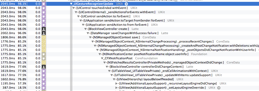 And this is where the problem appears — it takes too long(about 3-4 seconds on an iPhone 4) to do that. And it seems like the time is spent calculating layout for the cells.