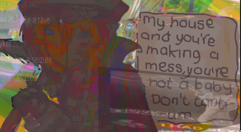 huge thanks for my friend's fanart,, @Printerbattle @darkenedfountain(also hi i stole two lines of their code) and the ever so sexy @gambling-addictand ignore little virgin chud confetti :/ hate that guy sooo much